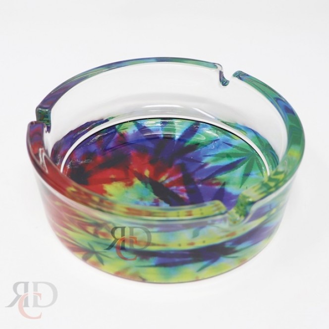 • This glass ashtray features a hemp leaf central design with the "It's 420 Somewhere" message on top. It's made with thick glass, so it won't easily break even after a drop or two. It has a classic round shape with built-in cigarette rests.
