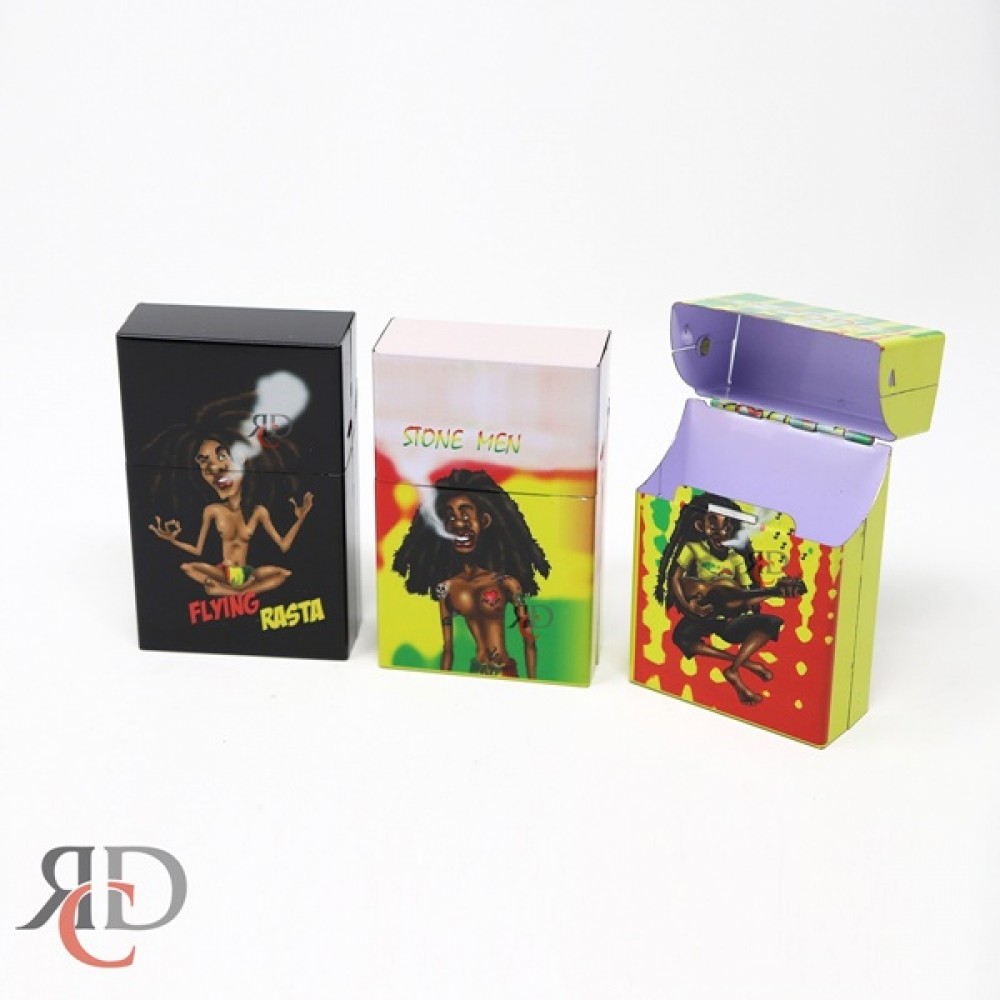 Add a vibrant touch to your smoking essentials with the Jamaican Design Cigarette Case PCB66. Featuring assorted colorful Jamaican-inspired designs, this case is made from durable material to keep your cigarettes protected and fresh. Compact, lightweight, and perfect for daily use or gifting.